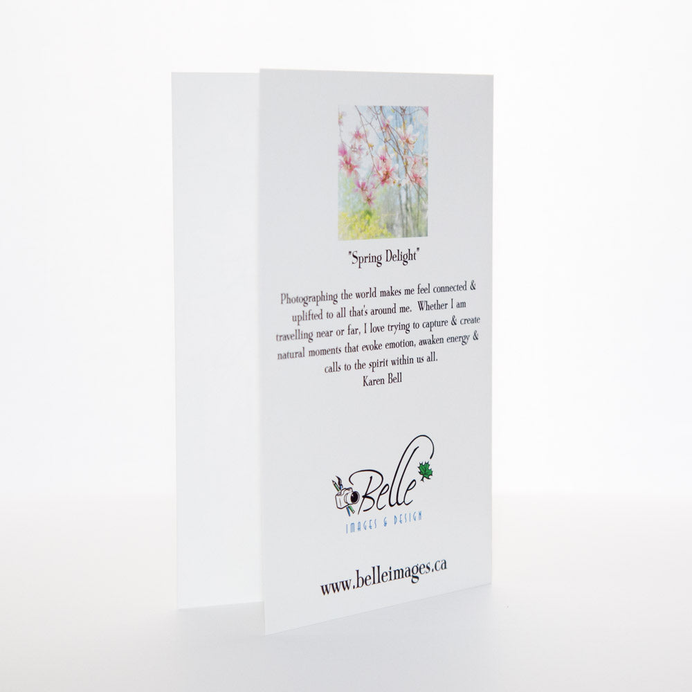 "Spring Delight" - A snapshot of early Spring when the first happy greens emerge from the winter grey. Beautiful magnolia's will bring a smile to any face on this beautiful card.
